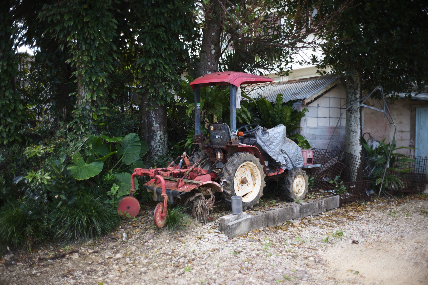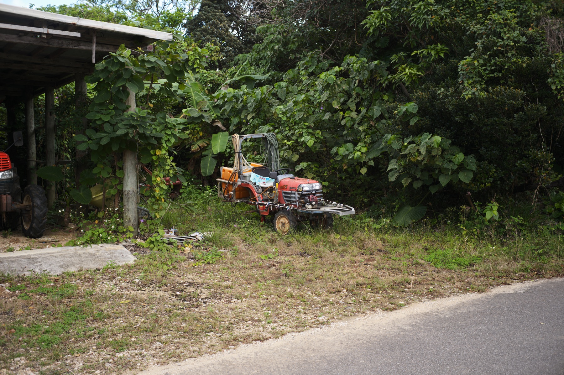 ところどころおいてある農業用トラクター。