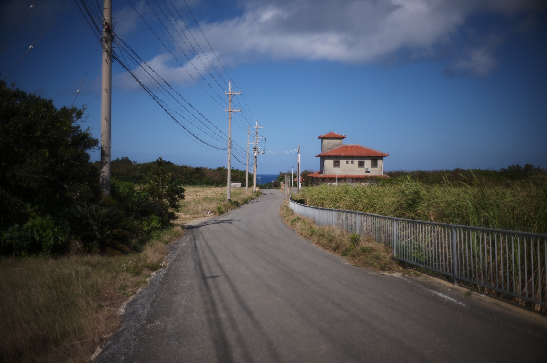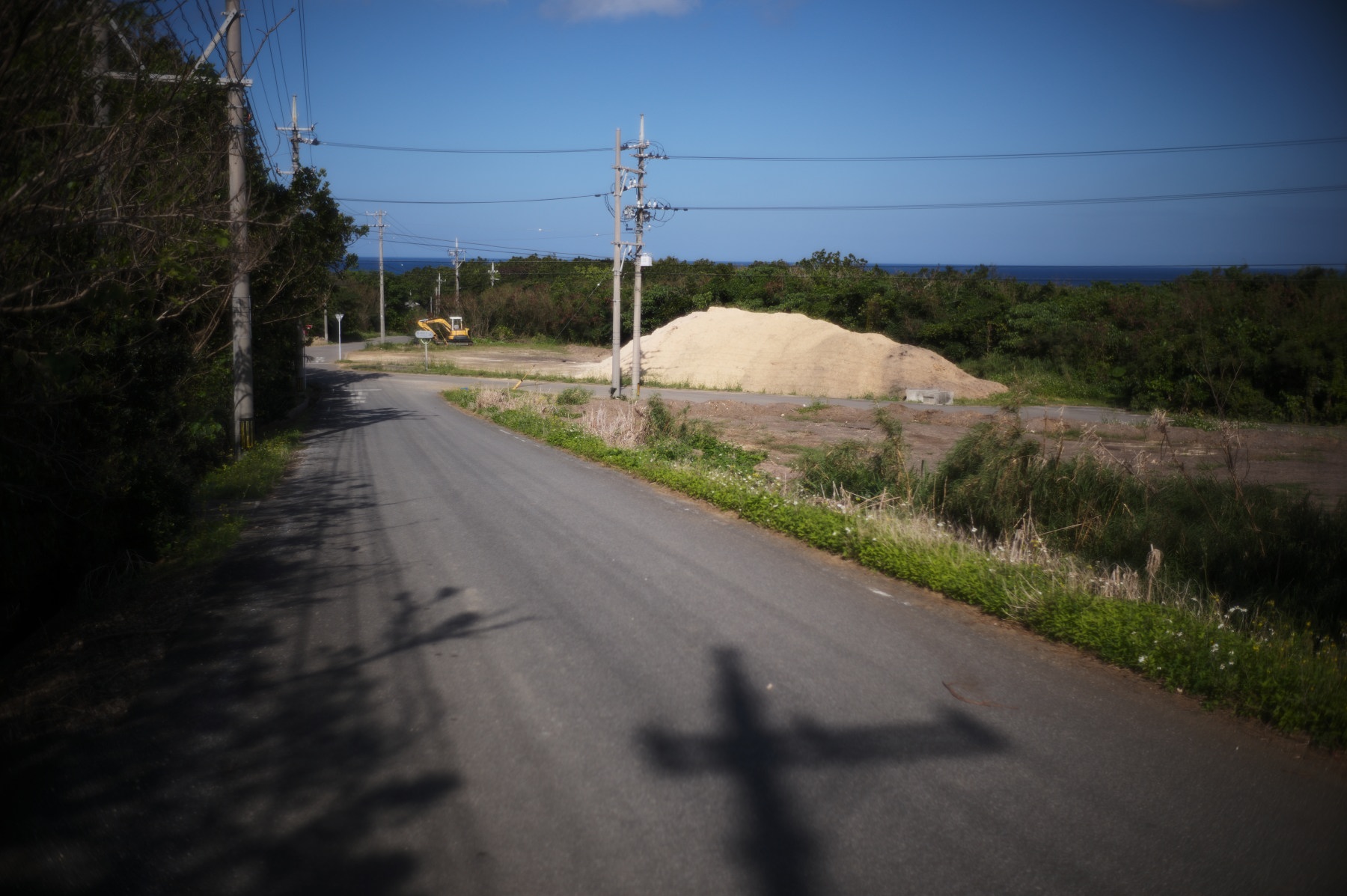 少しわき道に入ると海へ向かう道が。道の先に見える海って良いですね。