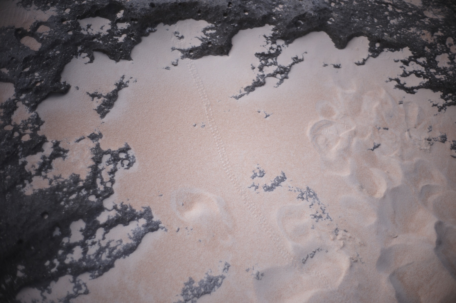ヤドカリの足跡。ヤドカリ自体はなかなか見つからない。