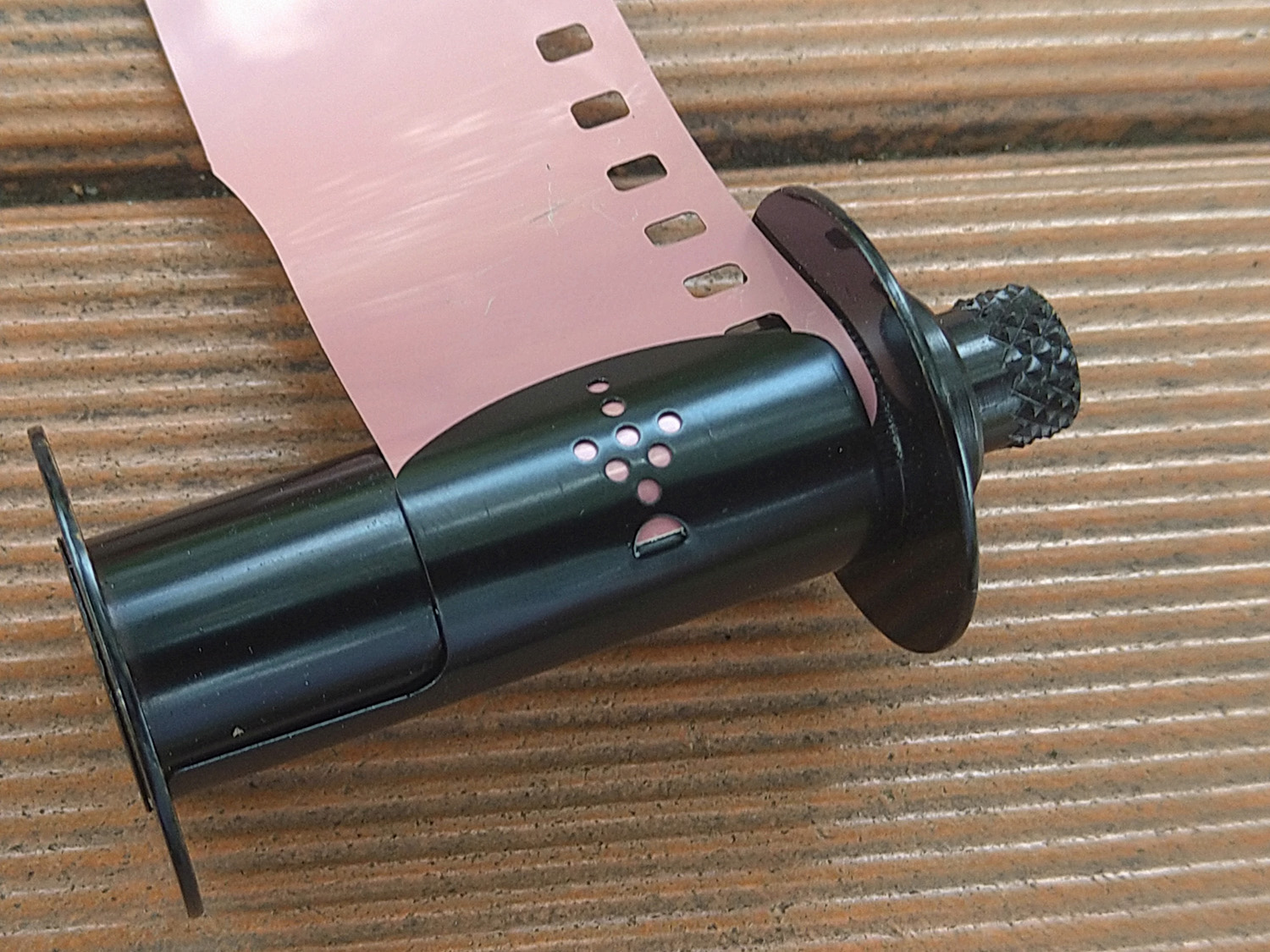 後は普通のカメラと同様に巻き戻しノブを操作してフィルムをはり、巻き上げノブできっちり巻き取ってから蓋を閉めればOK。