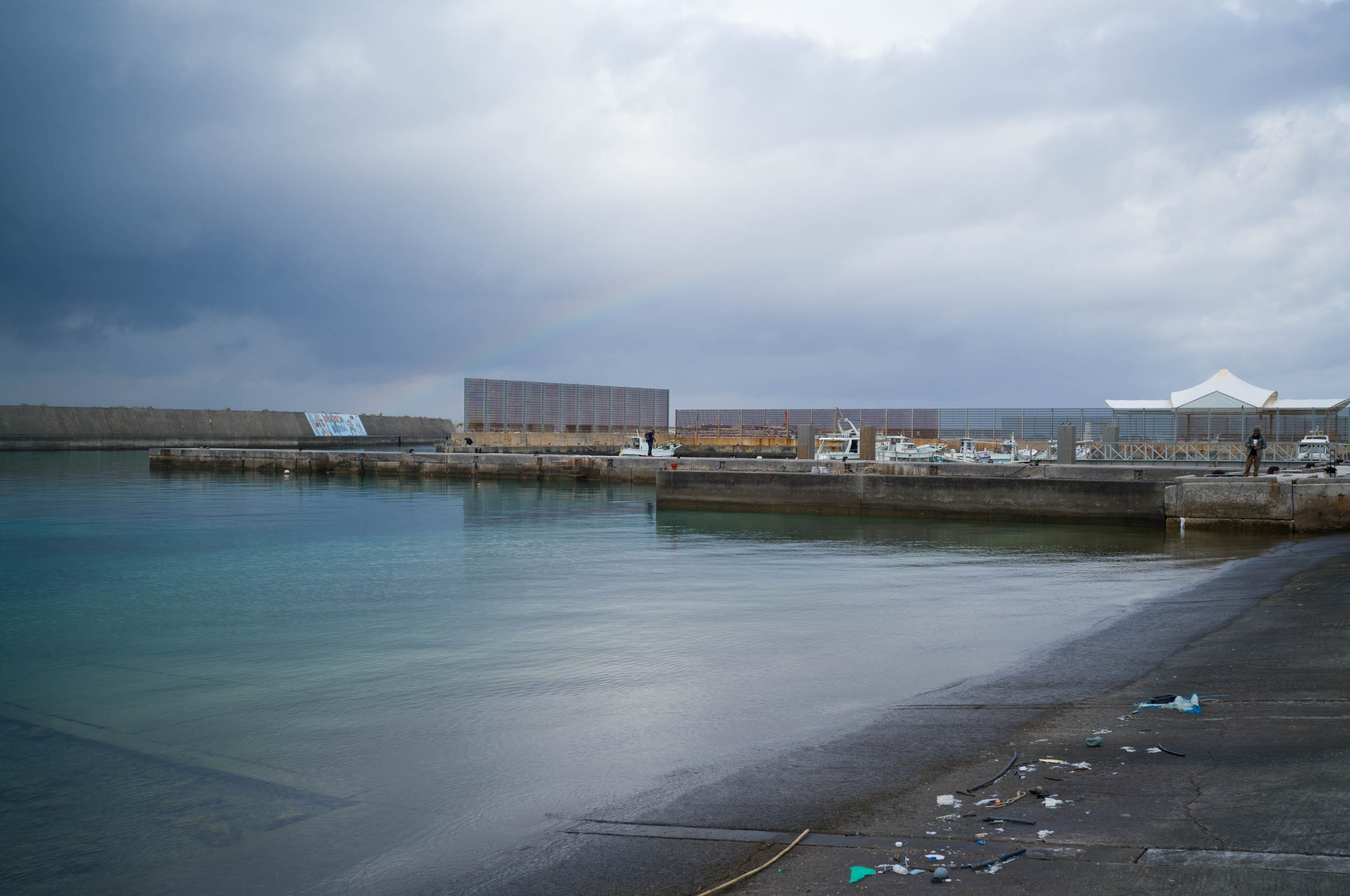 遠くに虹が。